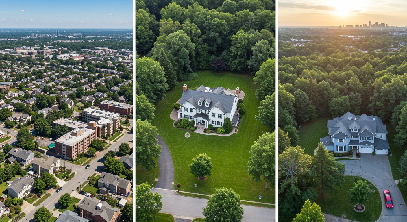They add a rarely seen “bird’s eye” view of the entire property to highlight yard features, parking, and adjacent properties.